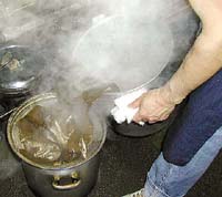 3.の2つの鍋を1つに合わせて、2番ダシをとります。