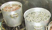 3.の2つの鍋を1つに合わせて、2番ダシをとります。